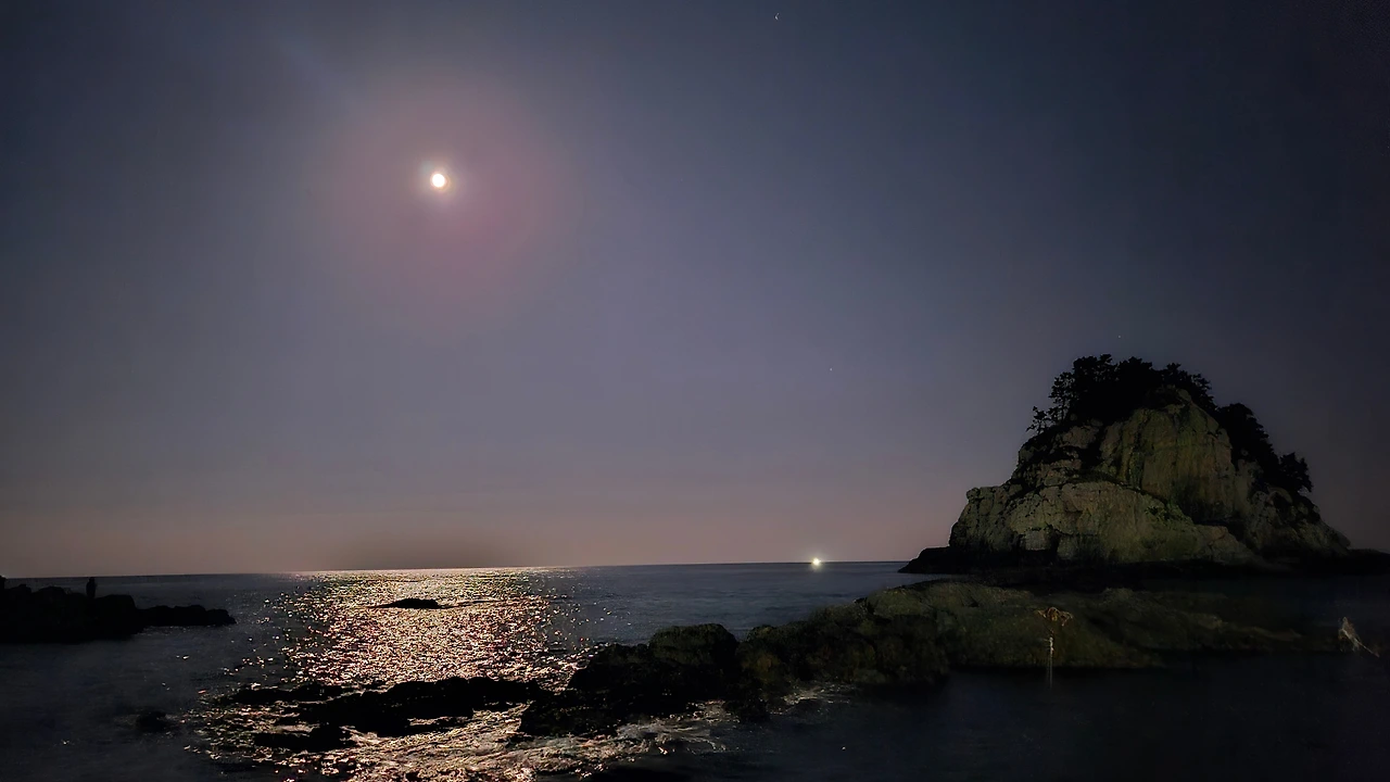 떡집에서 갓 나온 송편과 방금 기름에 부쳐 낸 전과 튀김을 가지고 오륙도를 향했다. 추석을 하루 앞둔 날인만큼 쟁반같이 둥근달이 커닿게 밤바다 위에 떠 있었다. 환한 달빛으로 출렁이는 바다 물결 위에 다이아몬드 가루를 수놓은 장면이 이로 말할 수 없는 장관이었다. 가로등 하나 없는 바다 위가 이토로 밝을 수 있다니. 캠핑용 의자를 펼쳐 앉아 맥주를 한 캔 들고 남편과 나란히 앉았다. 잿밥에 관심이 많은 우리는 물고기를 잡기보다는 멍하니 달과 바다를 보며 하염없이 시간을 보냈다.