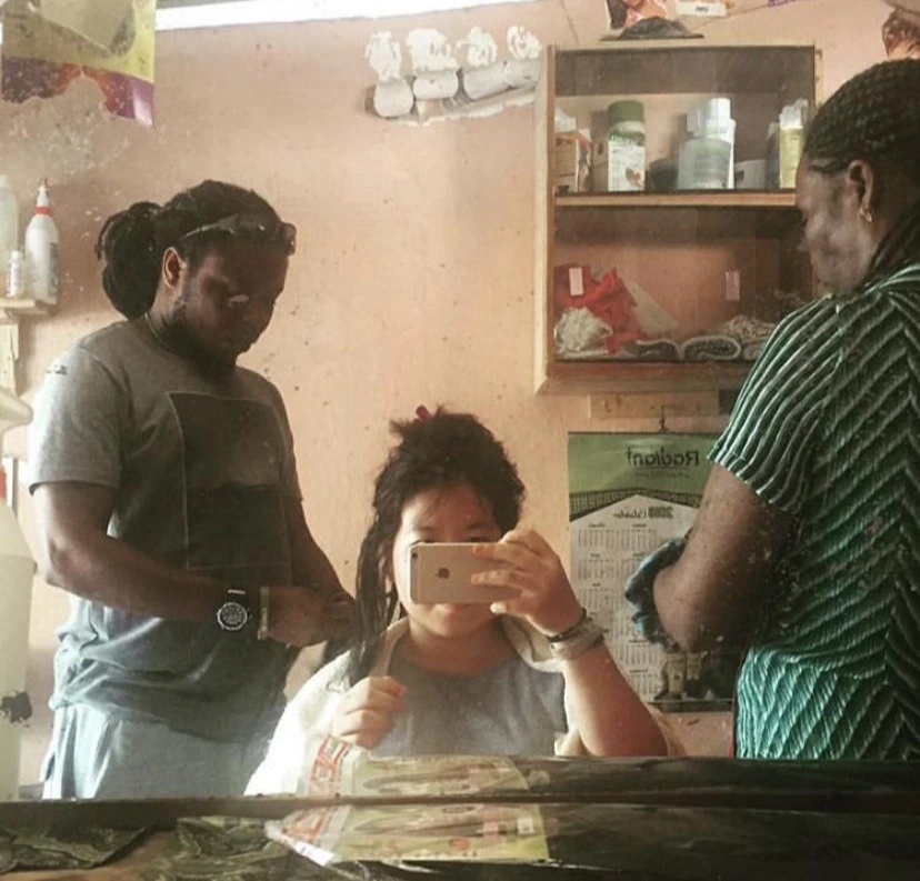 나는 아프리카에 가게 된다면 꼭 해보고 싶었던 게 있었다. 레게 머리. 유럽 여행객들을 보다 보면, 드레드를 했거나 옆머리만이라도 딴 걸 종종 볼 수 있었는데, 그게 내 눈에는 너무 멋있어 보였다. 뭔가 한국 사회에서는 쉽게 통용되지 않을 개인의 취향이랄까. 이번 여행에서는 꼭 해봐야지, 하고 있던 찰나에 언젠가 아프리카 여자라면 누구든 머리를 꼬을 수 있다는 것을 들었던 기억이 나서 헤리엇에게 물었다. 헤리엇은 동네에 자기가 가는 미용실이 있는데, 오늘 열었는지 가보자며 나를 데리고 갔다.