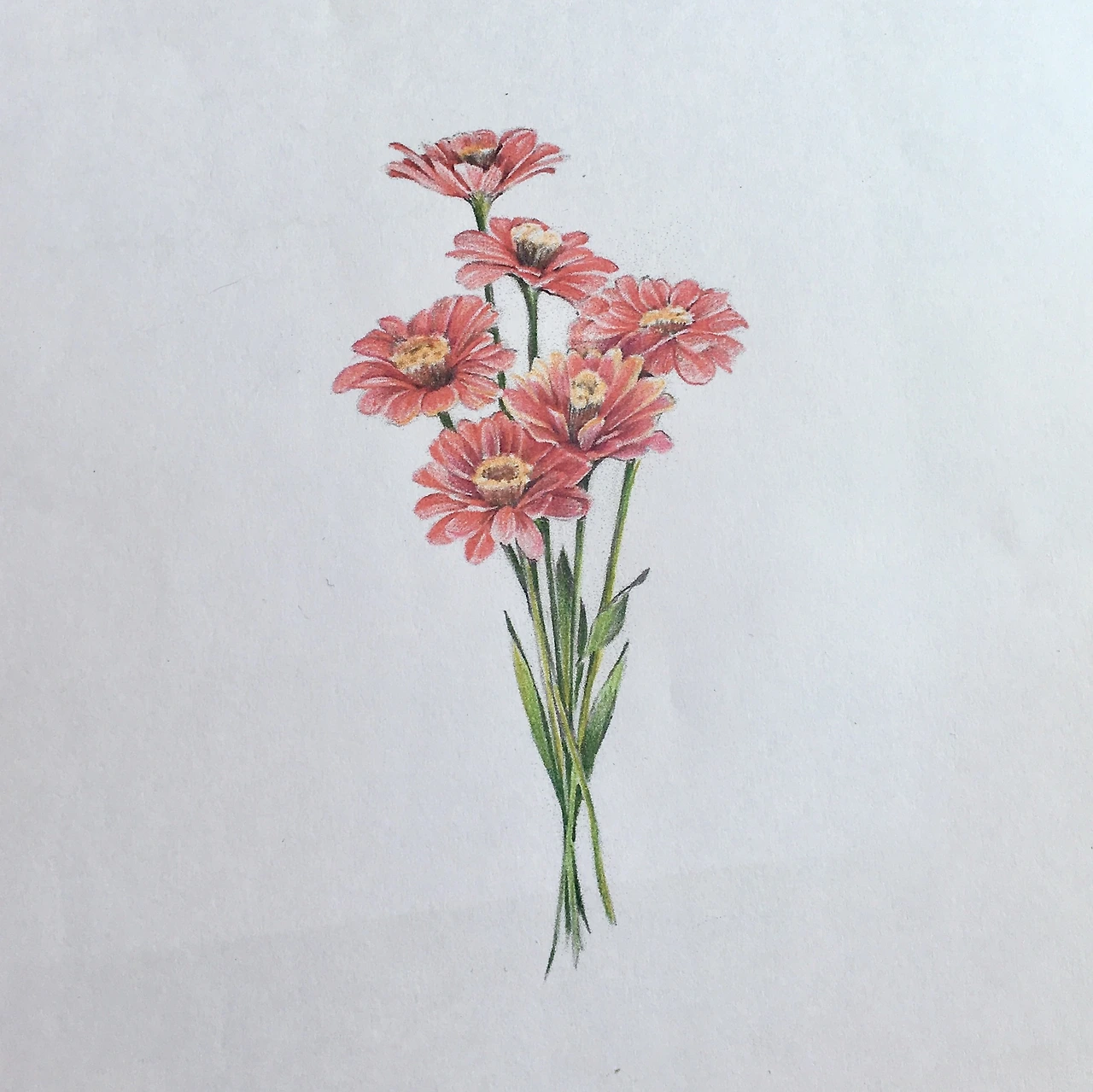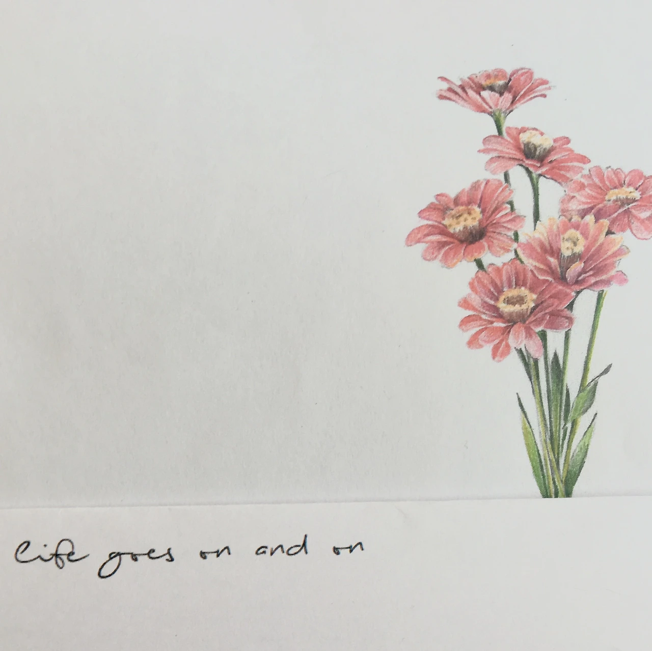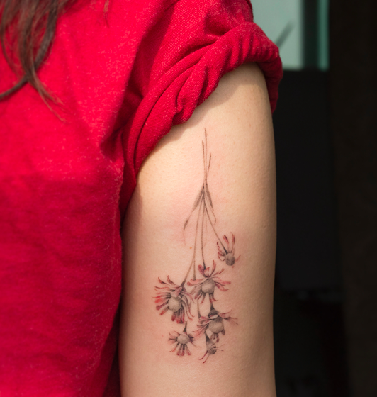 코모라는 타투이스트에게 감동을 받았던 이유는 코모는 레퍼런스를 찾아 도안을 그리기보다 가능하면 실물을 보고 도안을 그린다. 그래서 내가 시든 백일홍 6송이를 받고 싶다고 문의했을 때, 실제로 꽃집에서 꽃을 사다가 그 꽃을 말려, 입이 떨어지기를 기다렸다. 그리고 그 사진을 내게 보내주었다.