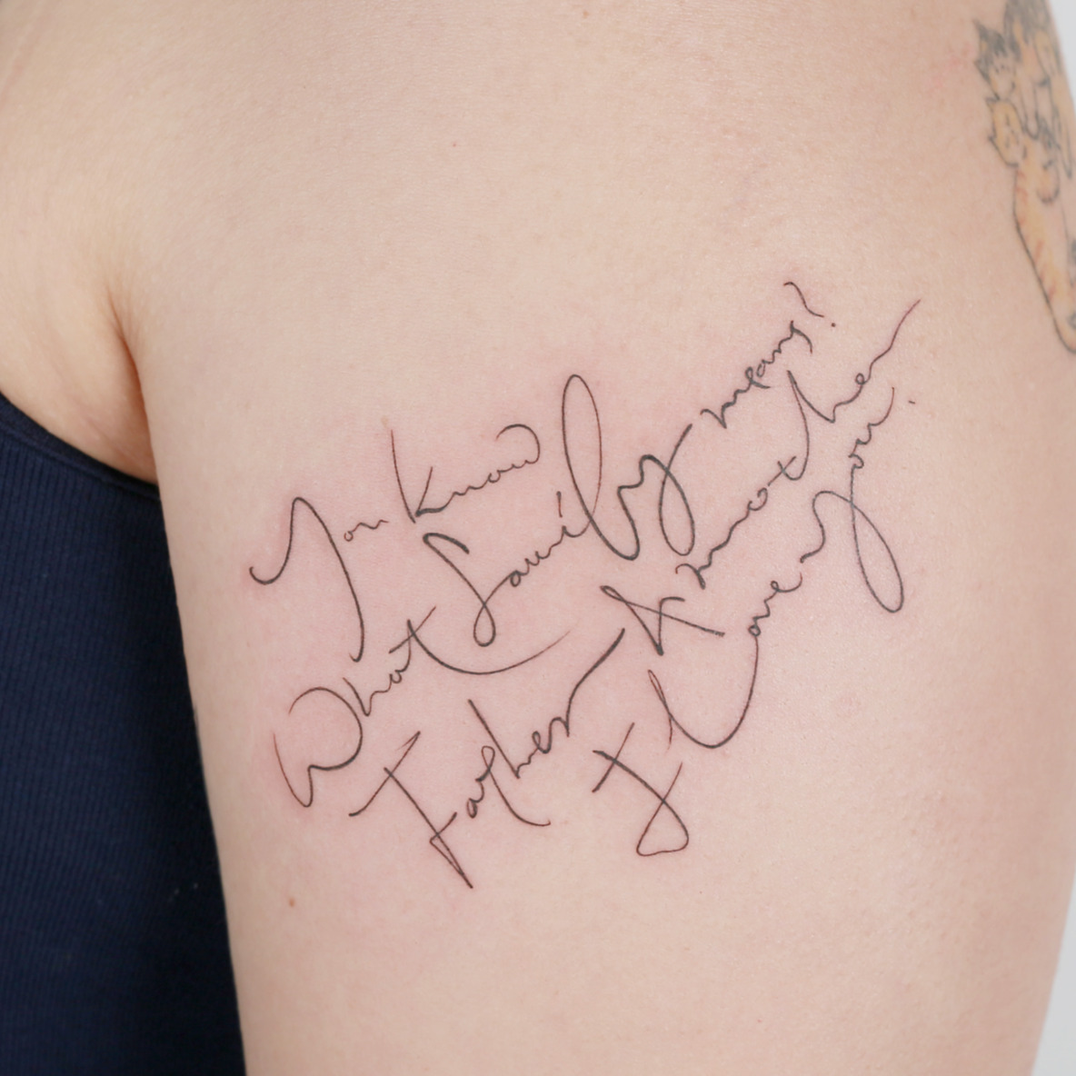 우리 아빠 식 농담이다. 문득 저때가 떠올라 타투를 받았다. 늘 인정에 메말랐던 아빠가 생각났다. 나는 어릴 때 왜 그렇게 청개구리 심보가 있었을까? 상대방이 원하는 게 뭔지 보이는 순간, 그걸 절대 쉽게 내어주고 싶지 않았다. 그런 이상한 심보가 있었다.