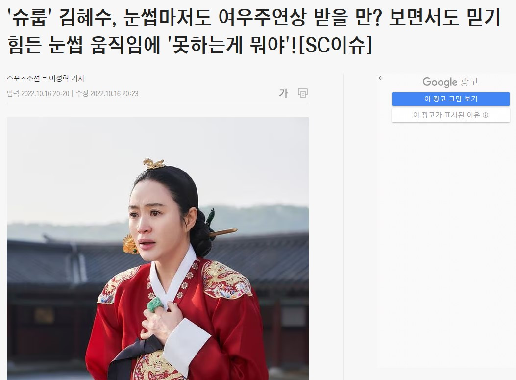 김혜수의 눈썹 연기는 자주 팬과 언론의 주목을 받는다