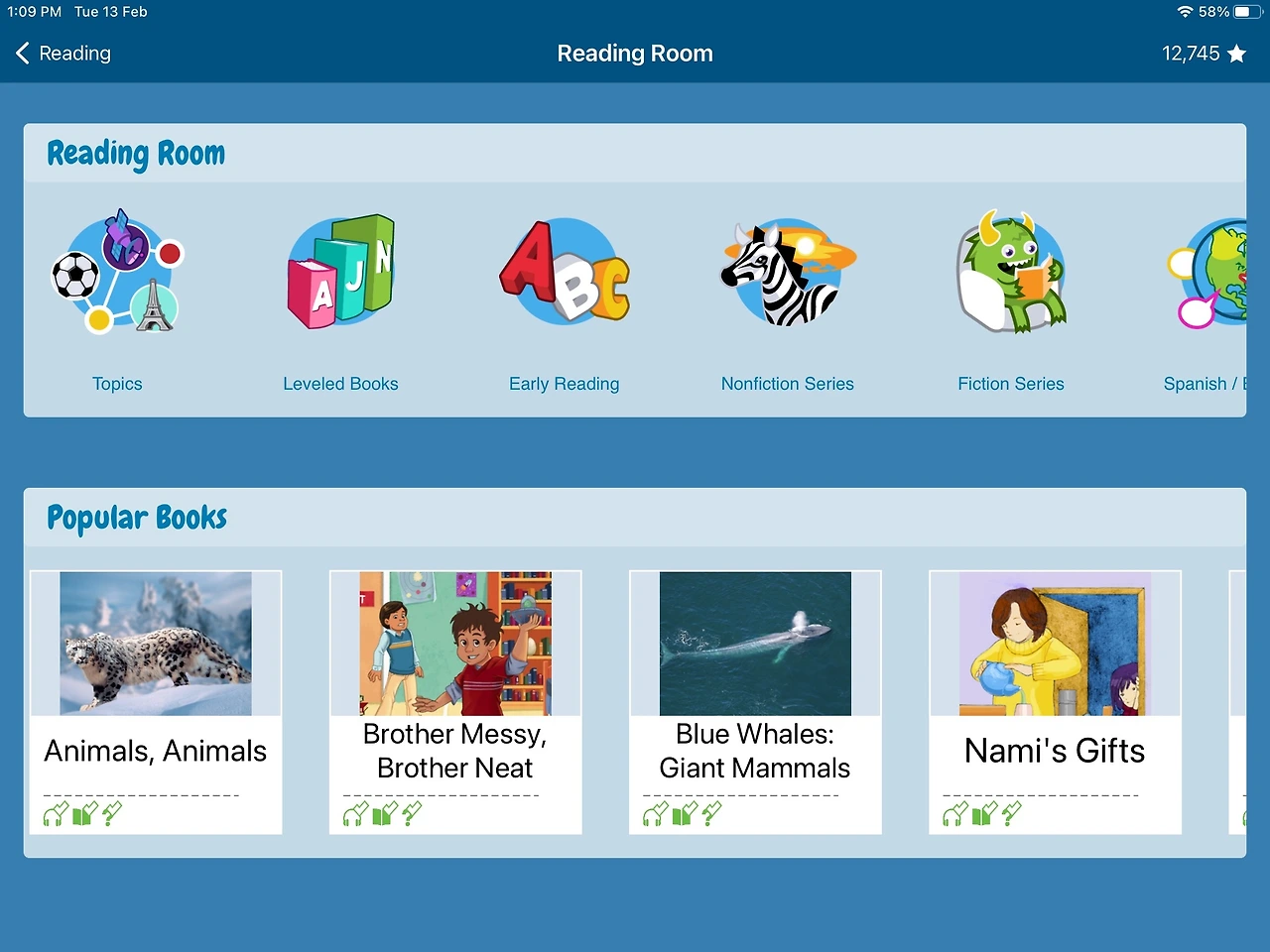 학교에서 알려준 계정으로 들어와서 reading room에서 leveled books에서 아이 수준에 맞는 책을 읽고 있어요. 한국에서도 해당 서비스를 가입해서 과외나 영어 학습에 이용하고 계시던걸요. 많이 유명한 프로그램인데 저는 최근에서야 알게 됐답니다. 듣고, 읽고(녹음 기능이 있네요.), 퀴즈까지 푸는 과정이 아이들 학습에 좋은 영향을 준다고 생각해요. 수준별로 적당한 분량의 책이 있어서 집중력이 짧은 아이들에게 좋은 거 같아요 아이는 현재로서는 이틀 동안 즐겁게 Kids a-z를 하고 있네요. 아이들에게 특화된 보상이 있는 듣기, 읽기, 퀴즈 풀기 앱이다 보니 아이가 많이 좋아해요.