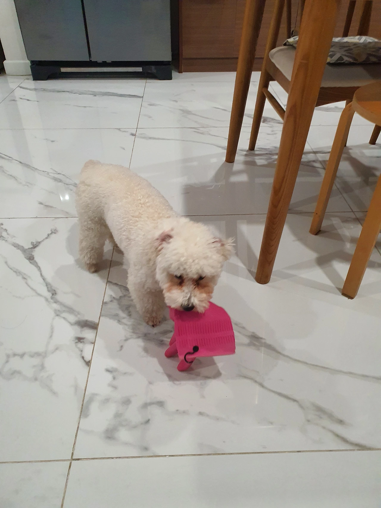 그 뒤로도 푸딩은 자신의 침대도 끌고 오고, 인형도 끌고 오며 혼자서도 잘 놀아요를 보여 주었다