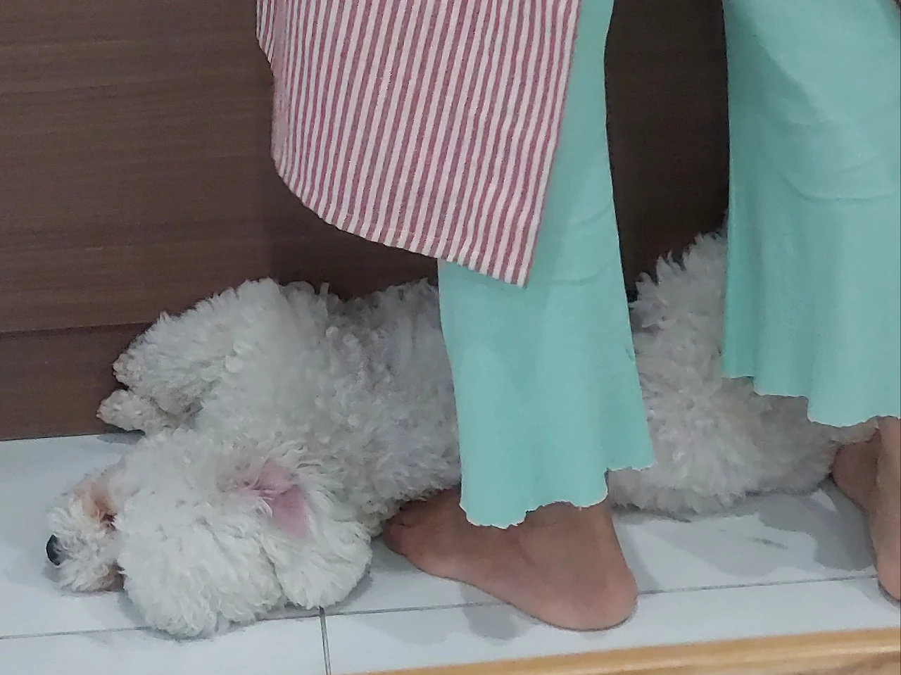 며칠 전 사료를 전해 주러 오셨던 보호자님도 집에서도 설거지하는 엄마 발등 위로 자주 올라와 냅돠~~ 눕는다는 일상생활을 전해 주셨었다