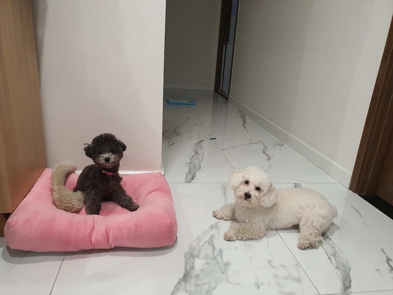 처음엔 그냥 앉더니 내가 "푸딩 앉아" 그러면 바로 나의 싸인대로 행동했다