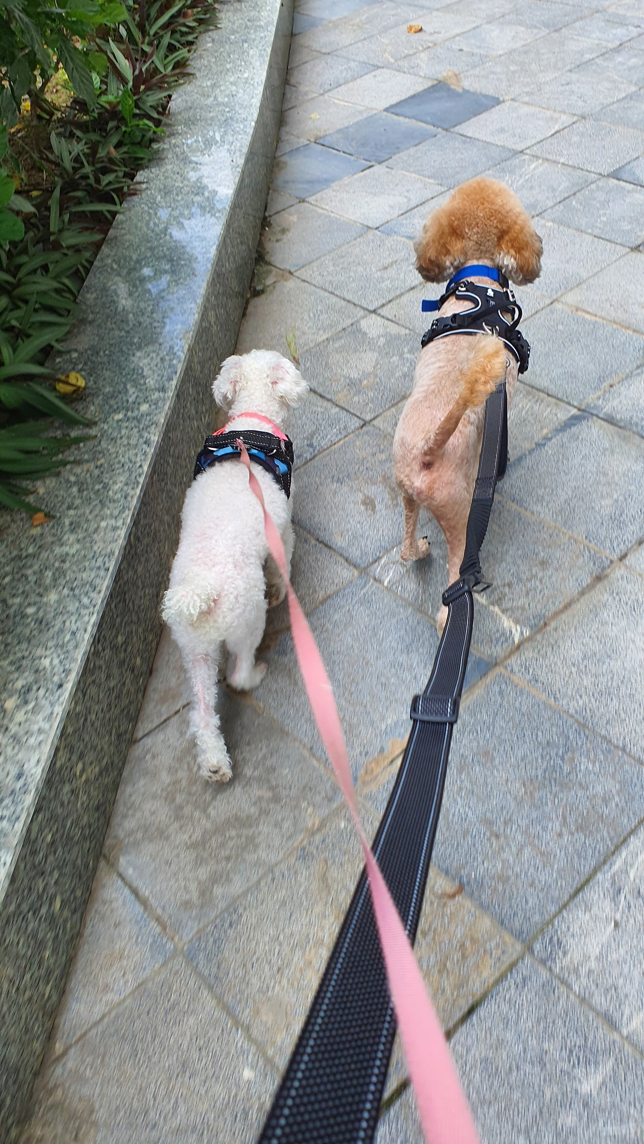 초코와 호두의 산책시간이 되었고, 산책줄을 준비하는 나를 보던 콩이는 '나도 나갈 수 있다'라고 퐁퐁 뛰었다