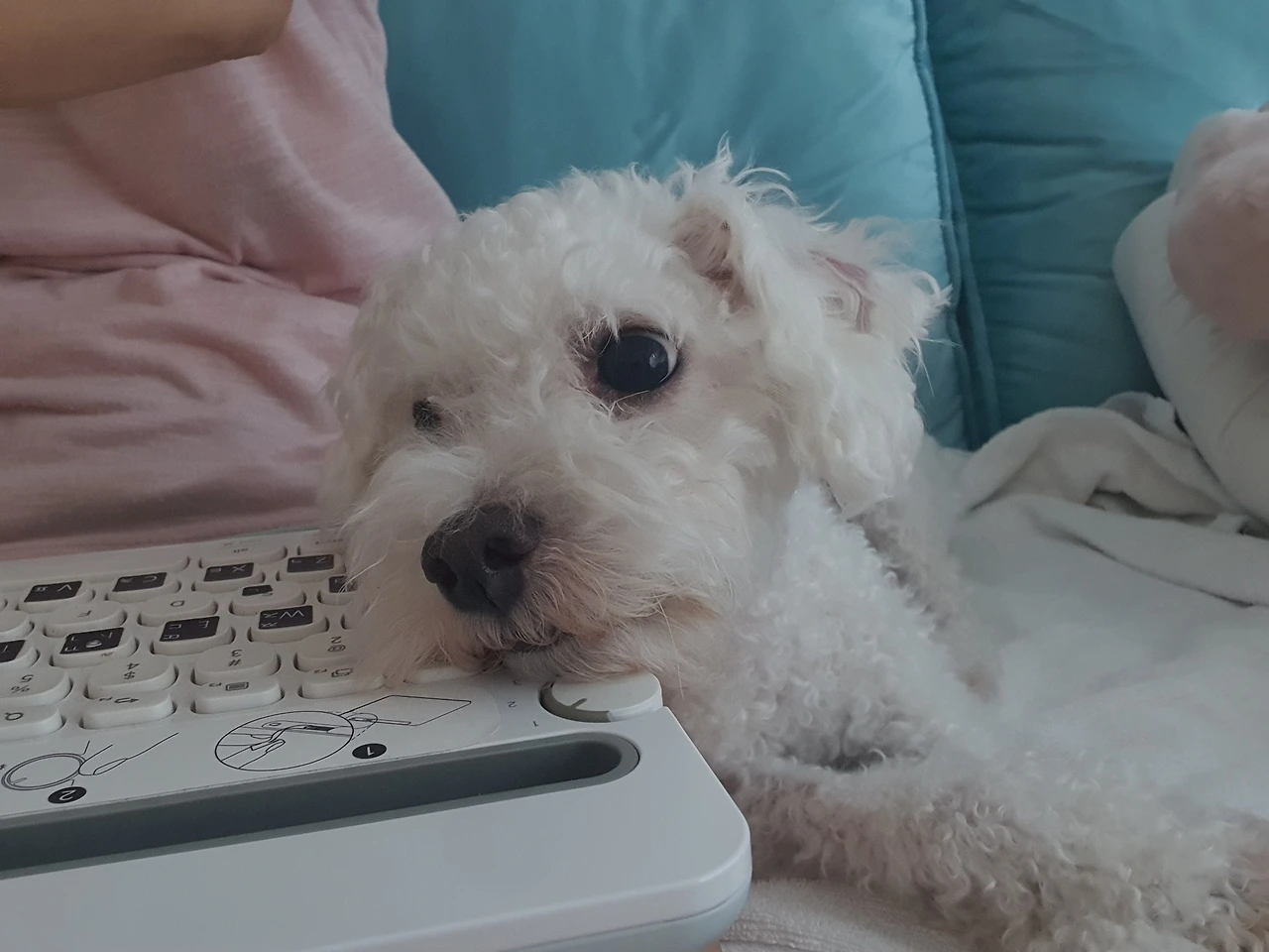 초코와 산책도 잘하고 / 글쓰는 내 옆에서 껌딱지가 된 콩이 그 뒤로 콩이는 약도 잘 먹고, 밥도 제때제때 잘 먹어서 기저귀를 차지 않아도 되었다