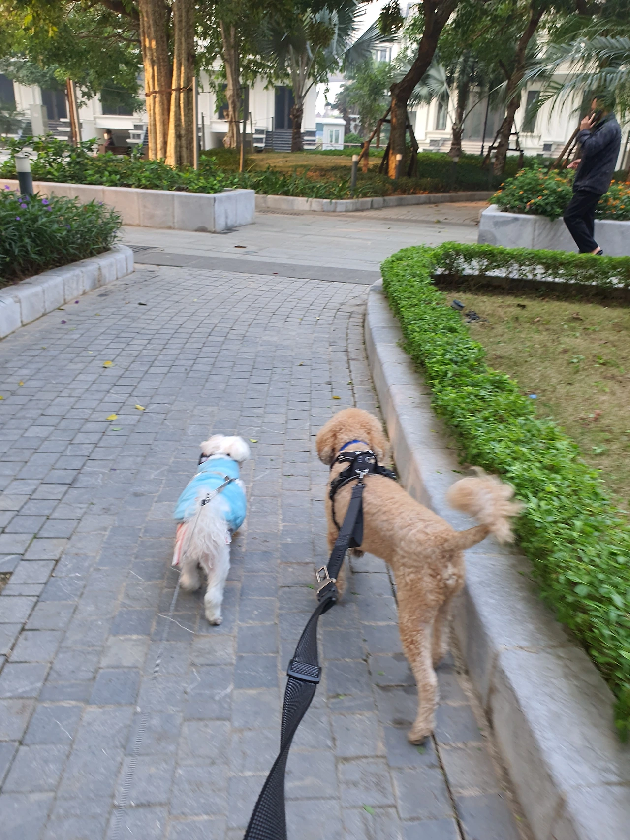 가급적, 두 마리 같이 다니는 것보단 따로 분리 산책이 더욱 좋다