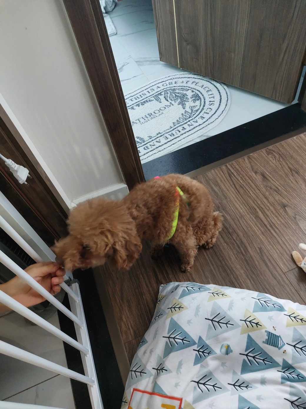 • 이름 : 칸쵸 • 나이 : 3.5세 • 성별 :남 • 견종 : 푸들 • 몸무게 : 4.5kg • 성격 : 겁이 많음, 산책을 좋아해도 너무 좋아함,, • 알레르기 음식 : 아직까진 잘 모르겠어요 • 함께 지내는 기간 : 3박 • 개인 준비물 : 산책줄, 입마개, 침대, 사료, 애착 인형이나 장난감