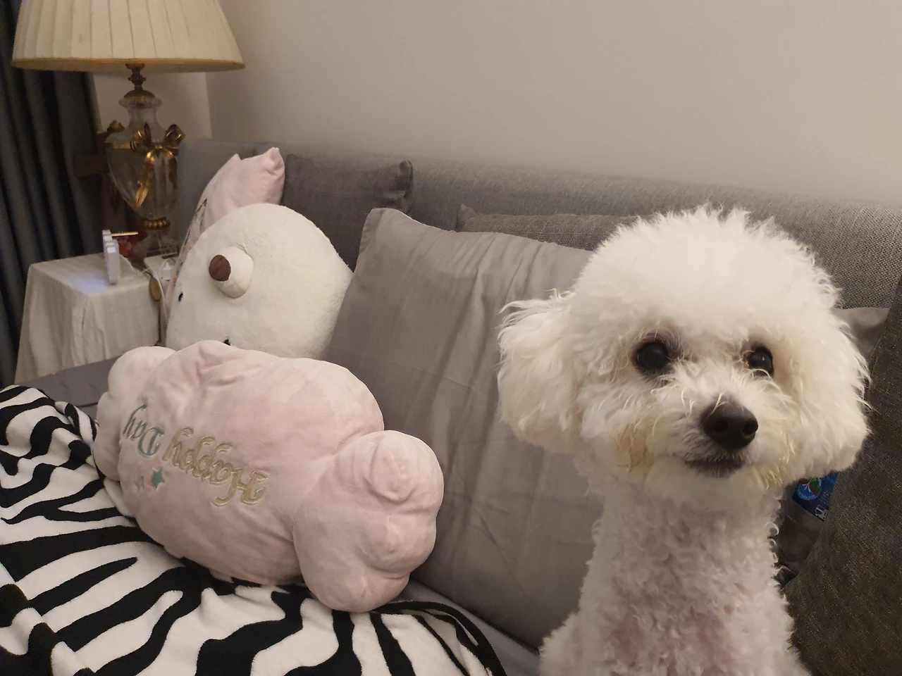 바뀐 잠자리를 불편해 하며 익숙하지 않아 했다