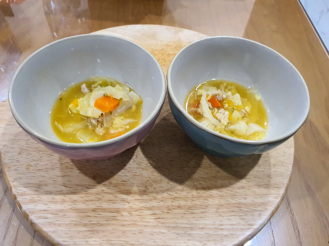 우리 집을 다녀 간 아이들의 최애 간식으로 등극한 간식을 따뜻하게 데워서 초코와 토리의 트레이로 각각 올려 주었다