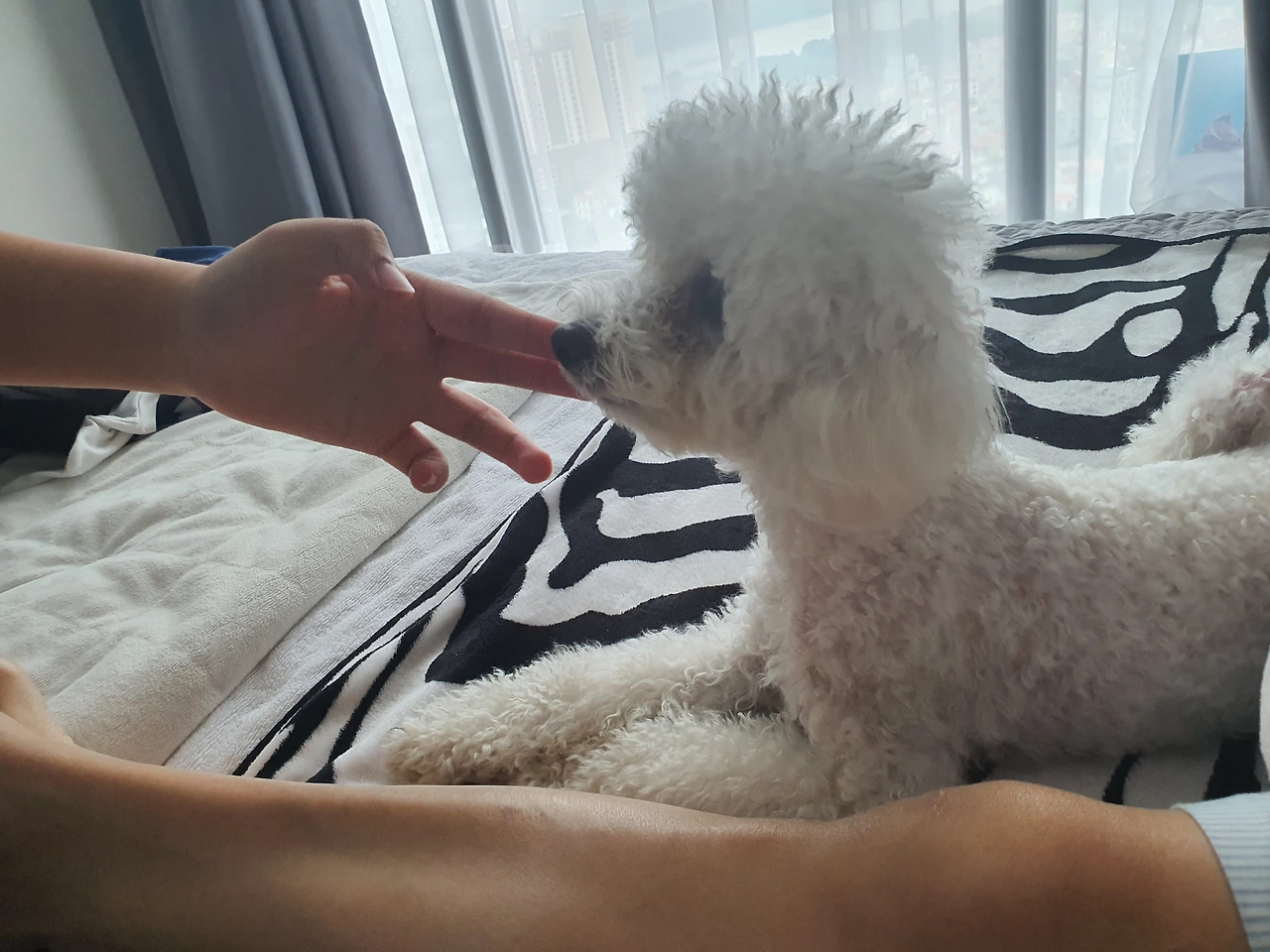 '크..크응...킁킁...크킁' 얼굴을 손 끝 가까히 다가와 본다