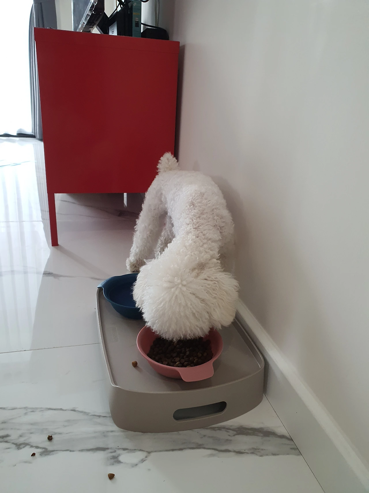 토리가 전투적으로 달려오더니 밥그릇에 넣어진 사료를 아 그 적 ~~아 그 적 씹는 소리가 경쾌하게 나왔다
