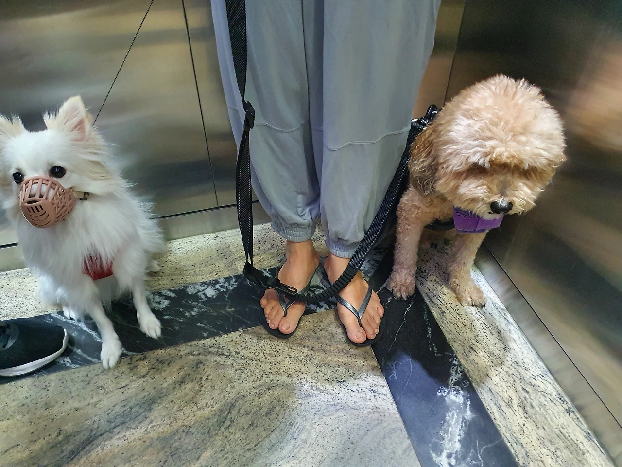 초코와 쪼니가 나를 마구마구 잡아당긴다