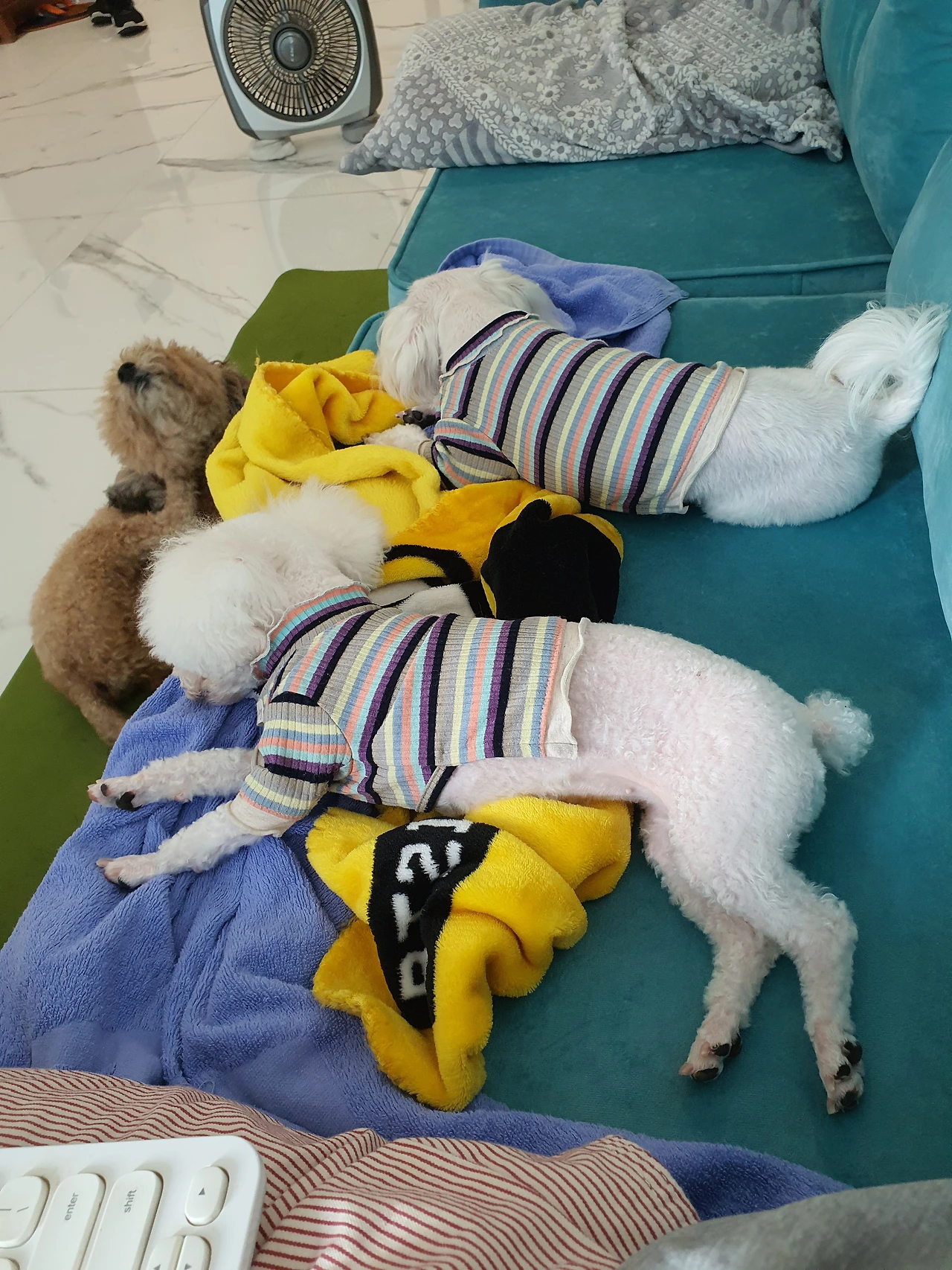 다행인지 아니면 서로 간의 서열이 잡힌 건지 알아서들 골고루 나의 주변으로 애워싸여 캄캄한 밤을 깨지 않고 모두들 평온하게 잘 수 있었다
