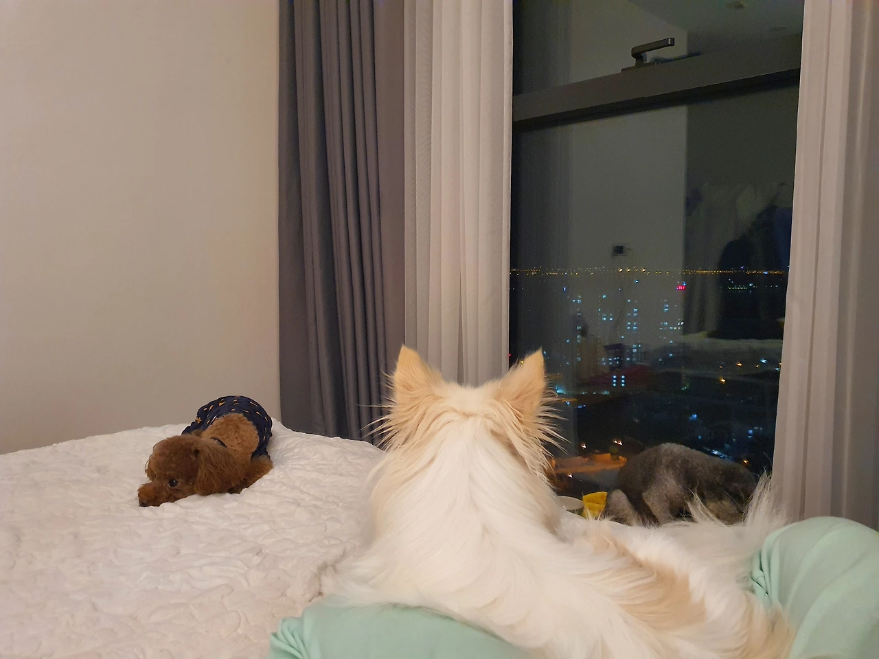 어두워진 방에서 초코는 밤 야경을 한참을 바라보았다