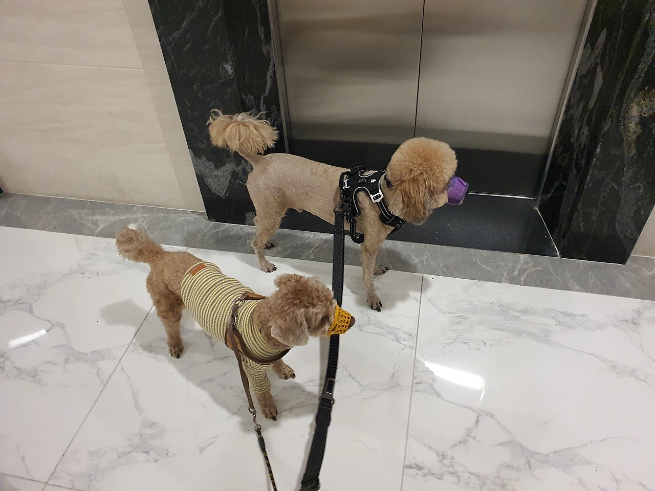"엄마!! 이번에 캐빈이 별로 안 짖네? 내 기분 탓인가? 왜케 순해졌지?... ㅎㅎㅎ"