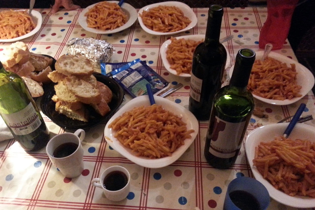 우리는 의기양양하게 냄비를 들고 귀환했다. 그리고 저녁식사가 완성됐다. 제한된 재료를 가지고도 이탈리아인들은 늘 최고의 파스타를 만들어낸다. 테이블에 촛불을 켜고, 벽난로도 지피고, 파스타를 나누어 담고, 빈 컵에 와인을 채우고, 밥 말리의 음악을 틀었다.