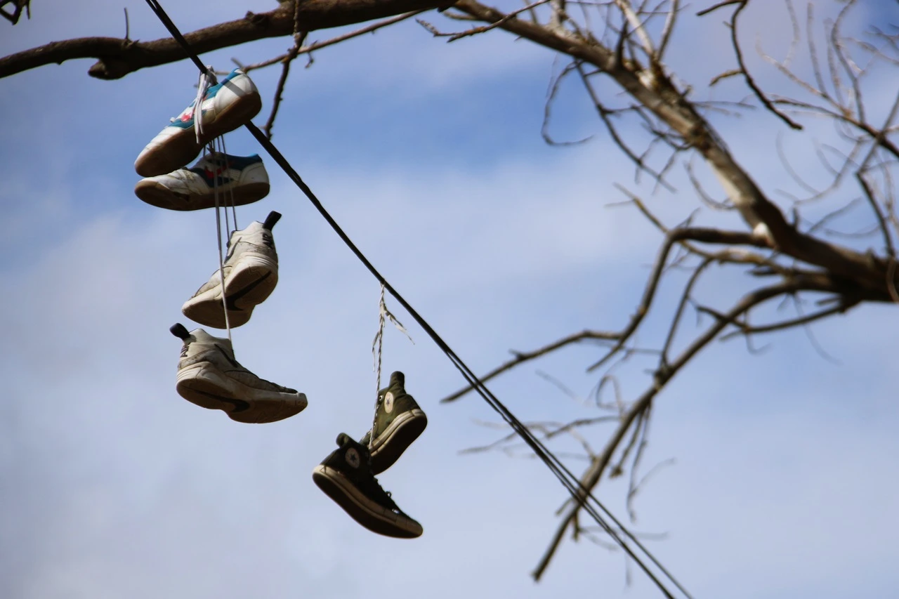 ▲ 전깃줄에 매달린 신발들 특별한 이유가 있는지 미스테리다 ⓒ 정효정