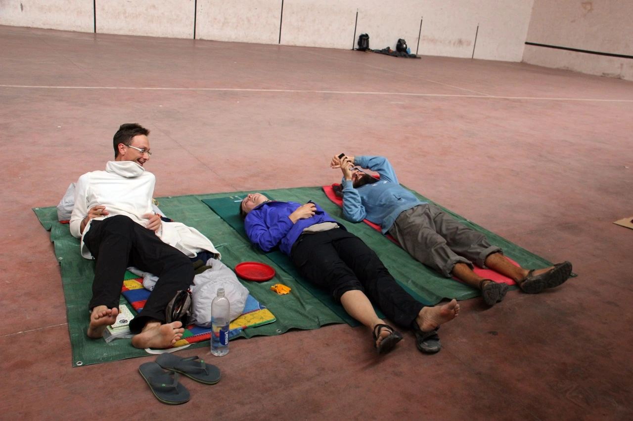 ▲ 체육관 바닥에 누운 순례자들 숙소가 다 찼을 때는 체육관에서 묵을 수 있게 해준다ⓒ 정효정