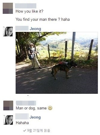 "개나 남자나. (Man or dog, same)"