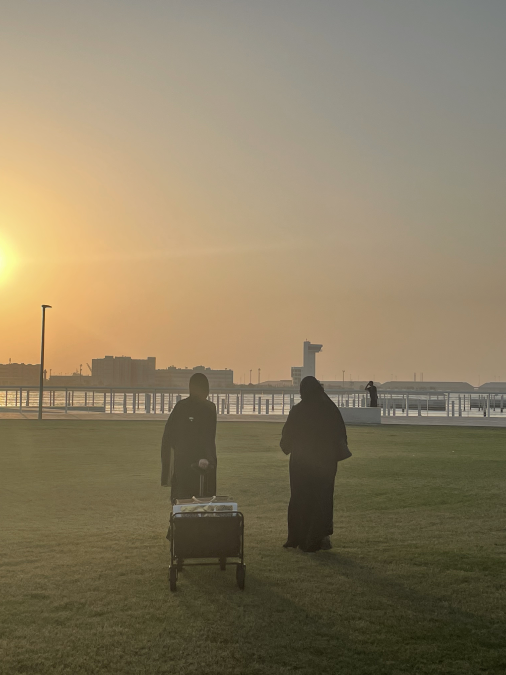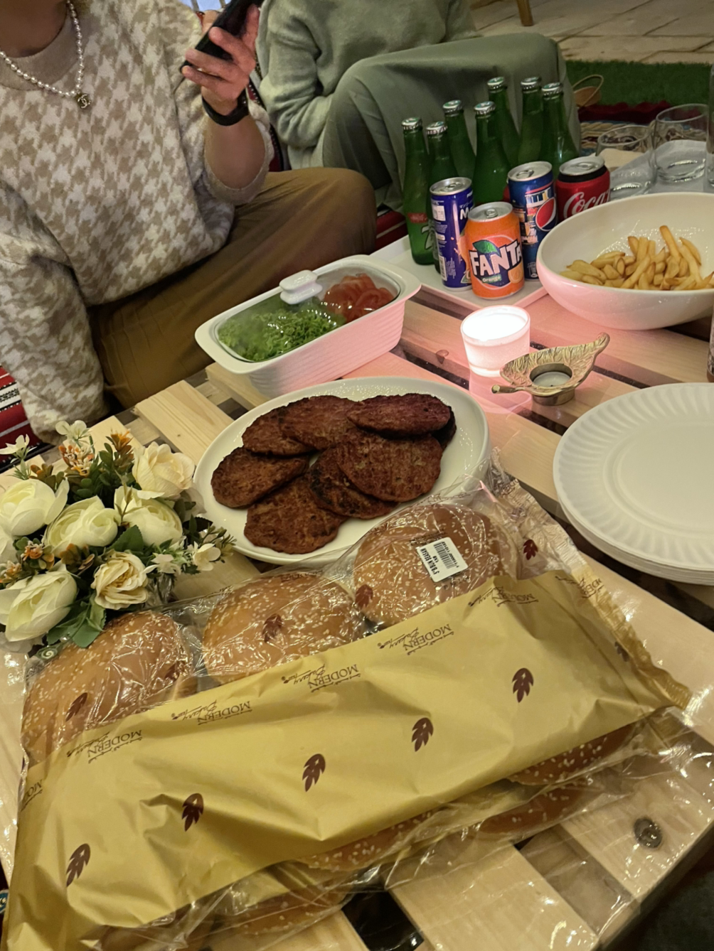 에미라티 사람들은 가족 수가 많다보니 빌라에 많이 산다. 야스 쪽에 사는 친구가 집에 초대해줘서 같이 마당에서 홈 피크닉을 즐겼다. 평소 잘 꾸미는 친구인데 역시 집도 너무 예쁘고 피크닉도 정말 센스 있게 준비해놨었다. 여자들끼리만 있으니까 아바야를 입지 않고 평상복을 입었는데 자매 셋이 파워퍼프 걸스처럼 핑크, 파랑, 초록으로 옷을 맞춰 입고 맞아주었다. 마당에 작은 바비큐 할 수 있는 공간이 있어서 임파시블 패티를 구워서 비건 버거를 같이 해 먹었다. 늦게까지 같이 얘기하면서 맛있는 음식을 즐기고 아랍 문화에 대해서도 배웠던 잊지 못할 피크닉이였다.
