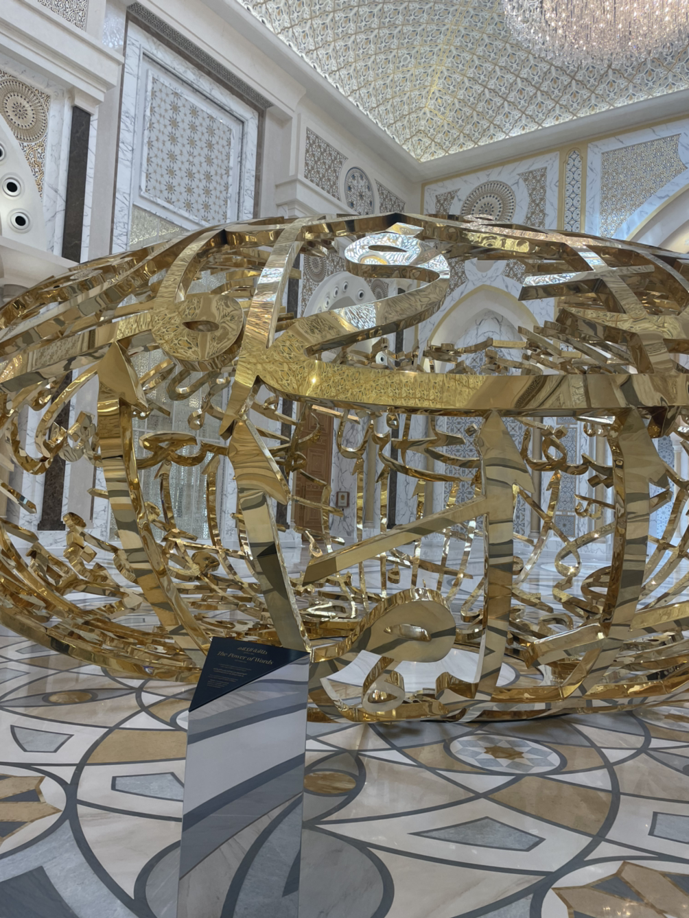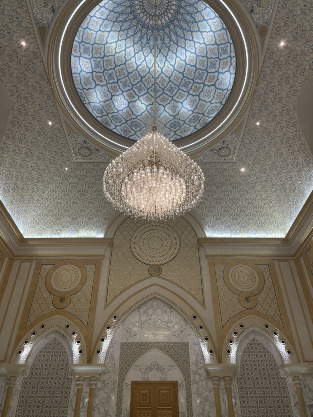 대통령궁으로 지금껏 가본 곳 중 제일 아름다운 곳이었다. 입구에서부터 반해서 넋을 놓고 구경했다. 흰색, 금색, 하늘색, 그리고 클래식과 모던함이 조화를 이루고 있는 곳이었다. 코로나 시국이어서인지 비수기이어서 그런지 보안요원 외에 나와 친구밖에 없어서 대관한 듯 천천히 자유롭게 구경할 수 있어서 더욱 좋았다. 가장 인상적이었던 power of words라는 조형물은 아랍어로 된 명언을 형상화하고 있었다. 또 5만 권 넘는 책을 소장하고 있는 도서관 역시 아름다웠다. 아랍에미레이트 정부에서 교육과 언어를 얼마나 중요시하는지 볼 수 있었다.