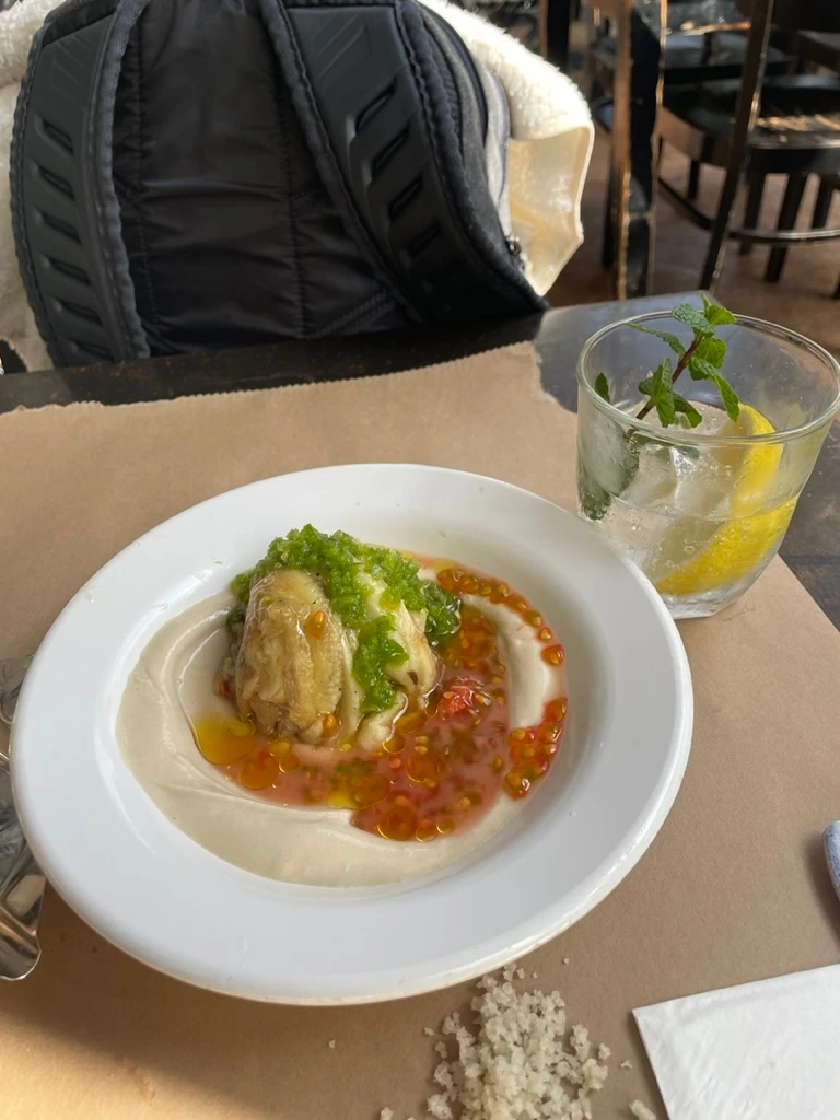 자파 쪽으로 걷다 보니 어느덧 해가 뉘엿뉘엿 졌고 도착했을 때즈음엔 거의 어두웠다. 후무스 샌드위치 하나를 중간에 클리어했음에도 하루 종일 걸었더니 꽤 배고파졌고 추천받았던 또 다른 식당에 갔다. 텔 아비브 물가가 비싸기에 너무 돈을 많이 쓰는 게 아닌가 싶었는데 언제 또 가볼 수 있겠나 하는 생각에 treat myself 하기로 마음먹었다. 갤러리처럼 꾸며진 예쁜 식당이었는데 요리도 맛있었다. 혼자 왔다고 하니까 바 테이블 자리를 줘서 바텐더랑 얘기도 좀 나누면서 천천히 밥을 먹었다. 해피 아워여서 50% 할인받아서 샐러드랑 칵테일 한잔을 시켰고 나중엔 seafood bisque까지 추가했다. 이스라엘 음식이 대체로 좀 짠 편인데 난 짠 음식을 좋아해서 내 입맛엔 꼭 맞았다. 양도 적당했고 만족스러운 식사였다.