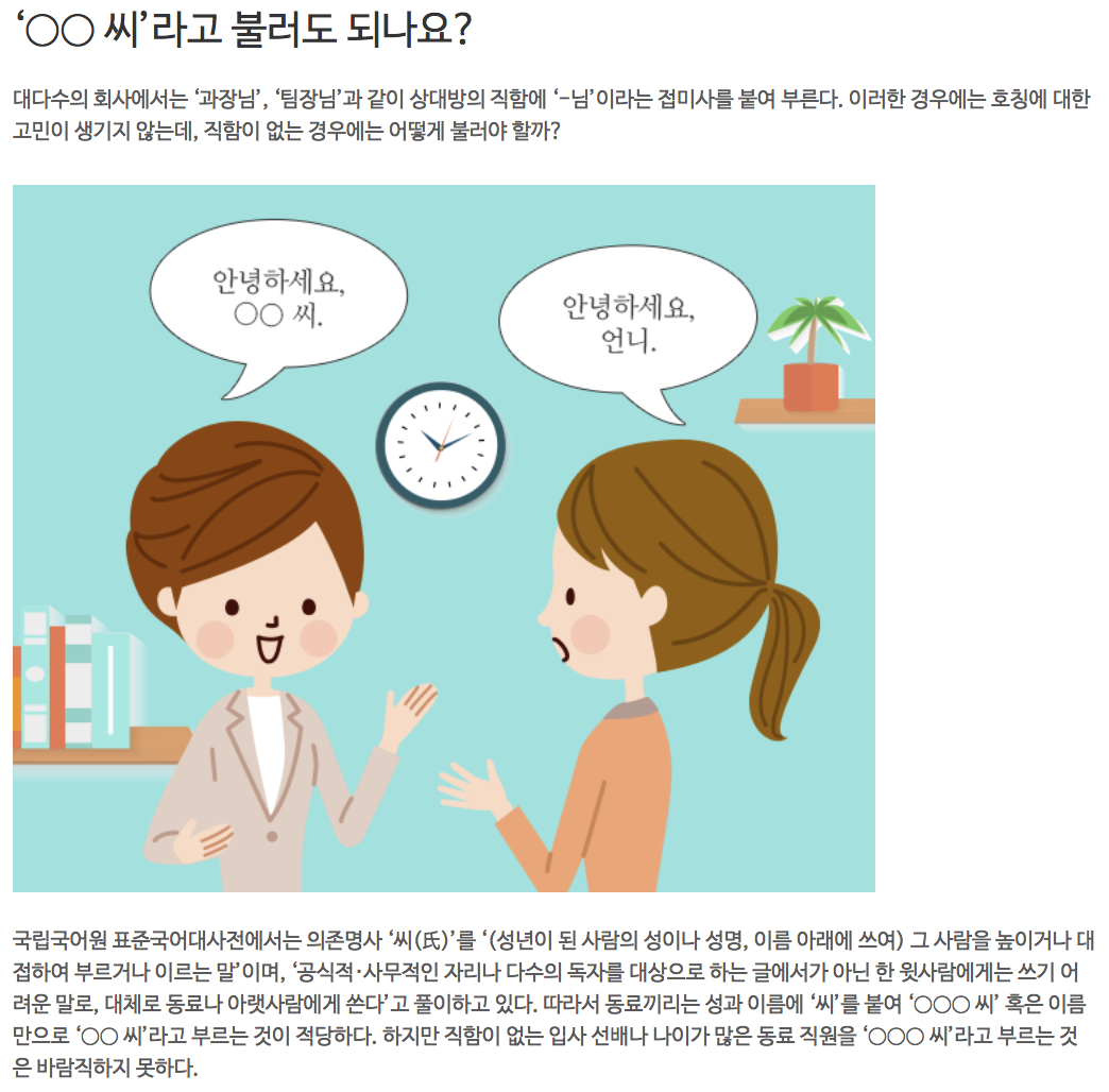 몇 달 뒤 들어온 새로운 동료분이 나에게 “경느씨” 라고 부르는 것을 들은 다른 더 높은 선배님은, 그에게 말씀하셨다.