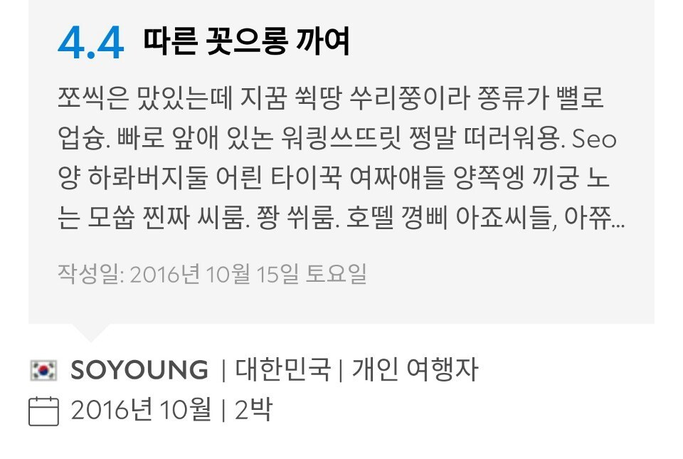 때로 존재하는, 서비스적으로 좋지못한 공간에 대한 평가를,