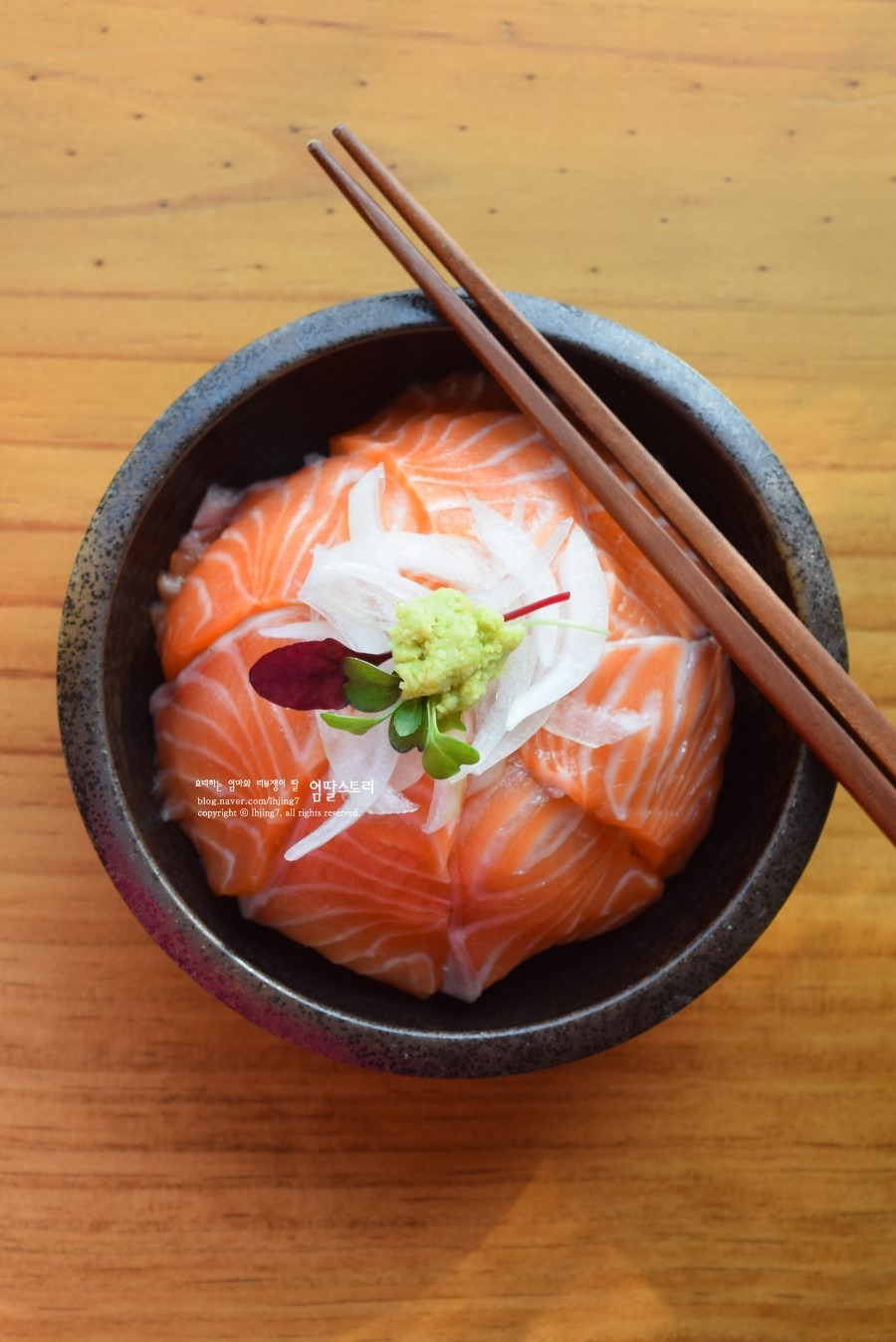 생연어를 먹기 좋은 크기로 썰어주세요.