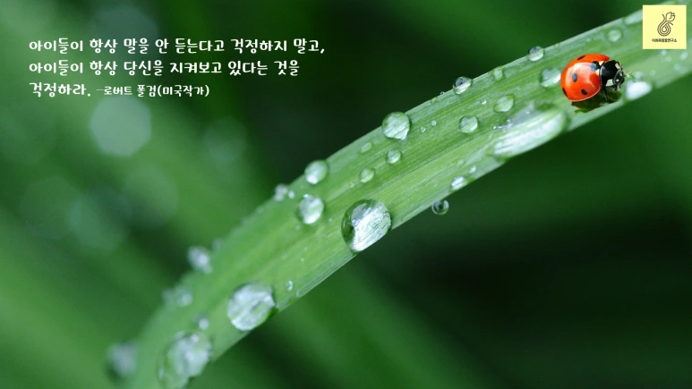 [아이는 부모의 등을 보고 자란다]라는 말이 있습니다. 세상에 태어나는 순간 본질적으로 선함을 가지고 태어난 아이가 순간순간 변화하는 모습은 바로 부모와 닮습니다. 아이들에게 어떠한 모습을 보여주고 계신가요?