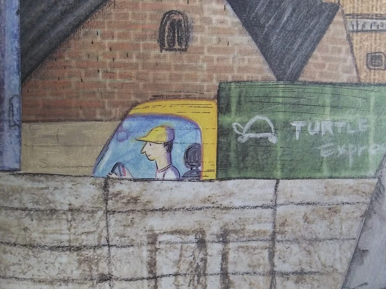 멀리서 택배차 한 대가 보입니다. " 택배요!!!"