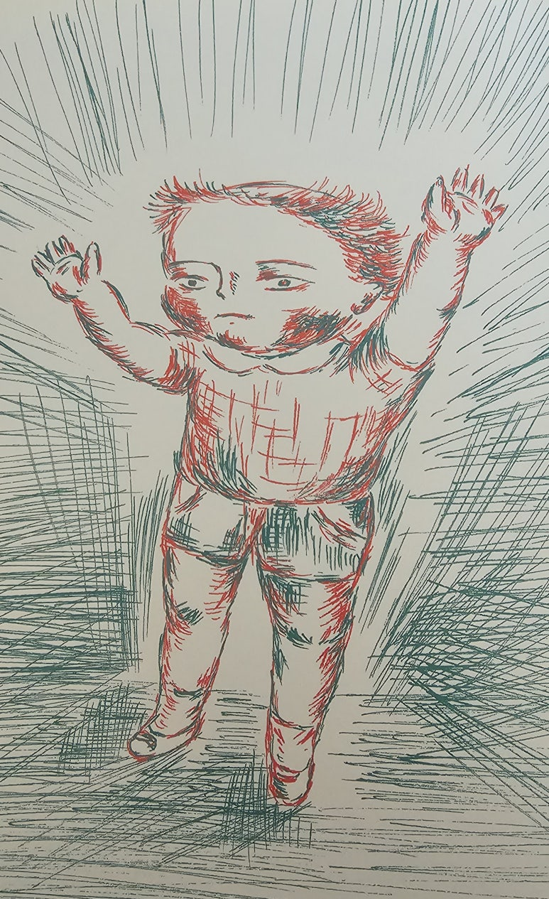 태어난 아이는 걸어오는 여자아이를 향해 손을 흔들며 외칩니다.