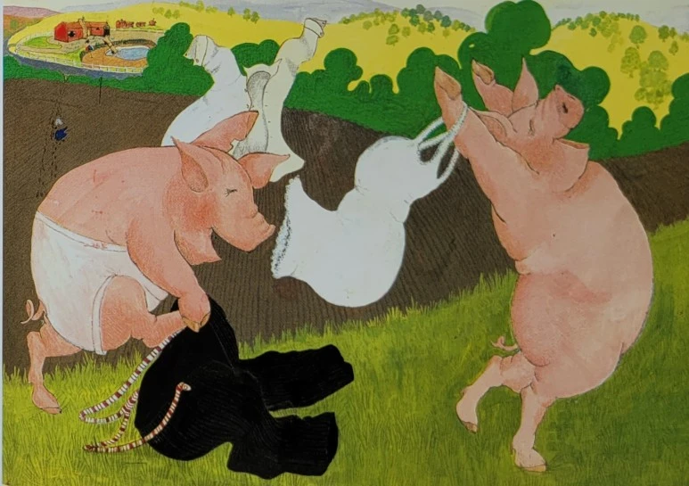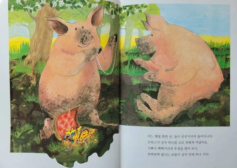마음놓고, 자유롭게, 실컷 딩굴고 노는 것이 두 돼지가 날마다 하고 싶은 일이였어요.