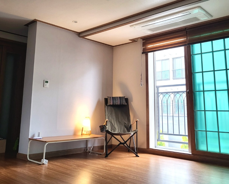 작다면 작고 크다면 큰 12평의 인테리어를 시작한다. 거실에는 테이블 하나와 캠핑 의자 한 개가 놓여있다. 테이블은 세 가족이 식사를 할 땐 식탁이 되고, 아이랑 유치원 숙제를 할 땐 아이 책상이, 내가 노트북을 할 땐 내 개인 책상이 되었다. 여행용 캠핑 의자는 윙 체어처럼 두어 한 사람만 앉을 수 있지만 시간차를 두고 번갈아 가며 앉아 쉬었다. 침실에는 오로지 매트리스 하나와 무드 조명등 하나만 두었다. 이불은 붙박이장에 넣어 두고 잘 때만 펼쳐 두고 기상 후에는 무조건 개어서 넣어 놓았다. 옷방 겸 창고로 쓰는 다른 방은 남편의 운동 용품과 자전거만를 두고 빨래 건조대를 펼쳐 말리는 공간으로 쓴다. 야외로 자전거를 탈 수 없을 땐 남편은 이곳에서 자전거를 고정시키고 페달링 연습을 하기도 했다. 2층이지만 아래층이 주차장이라 아이와 남편 모두 활동에 제한 없이 자유롭게 살 수 있었다.