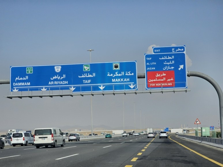 Taif로 가는 길에 또 하나 특이한 점은 무슬림이 가는 길과 비무슬림이 가는 길을 구분해 놓았다는 것입니다. Taif지역이 Mecca (메카) 근처라 이렇게 구분해 둔 것입니다.