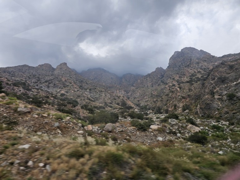 Taif로 올라가는 길에 먹구름이 잔뜩 끼여 금새 비가 솓아지다가도 조금 지나니 언제 비가 왔느냐는 듯 맑은 하늘에 햇빛이 강렬하게 쬐였습니다.