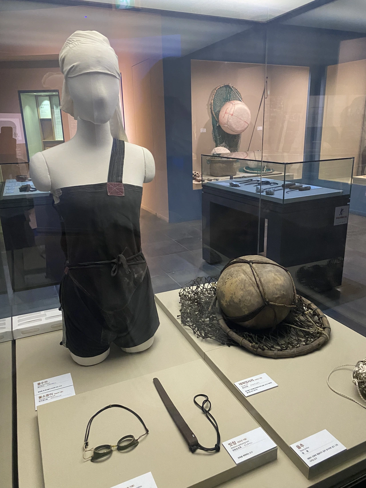 고문헌 속 해녀 그림에는 지금도 쓰는 해녀의 도구들이 그려져 있다. 태왁, 물안경, 까꾸리등 쓰던 물건에 새겨진 바다의 얼룩을 보며 그들의 지나온 시간들을 상상해 보았다. 필요한 것만을 오래 써왔고, 더 잡기 위해 새로운 도구를 만들지도 않았다. 필요한 것만 남겨두고 지켜온 것이다.