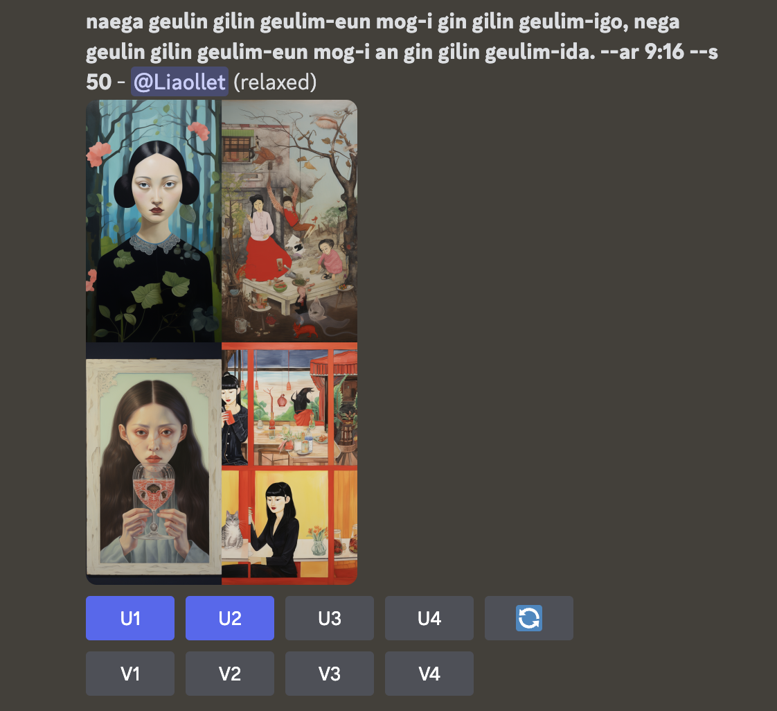 미드저니를 사용하며 여러 그림들을 제작해 봤다. 사실 나는 오래전부터 손으로 그림을 그려왔고, 디자인을 배우며 포토샵, 일러스트, 아이패드를 활용하는 법도 익혔다. 그러나 AI로 그림을 그리는 경험은 전혀 새로운 차원의 것이었다. 시간과 노력이 드는 테크닉적 장벽을 다 해결해 줬다. 한 문장이면 스타일도 카피하니 인생의 시간을 미드저니 구독료만으로 산 듯한 느낌이었다.