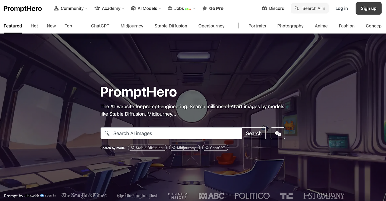 만들어진 이미지 프롬프트를 볼 수 있는 사이트가 있다. PromptHero이다. 이곳에 들어가 그리고 싶은 이미지를 클릭하면, 어떤 프롬프트로 만들었는지 볼 수 있다.