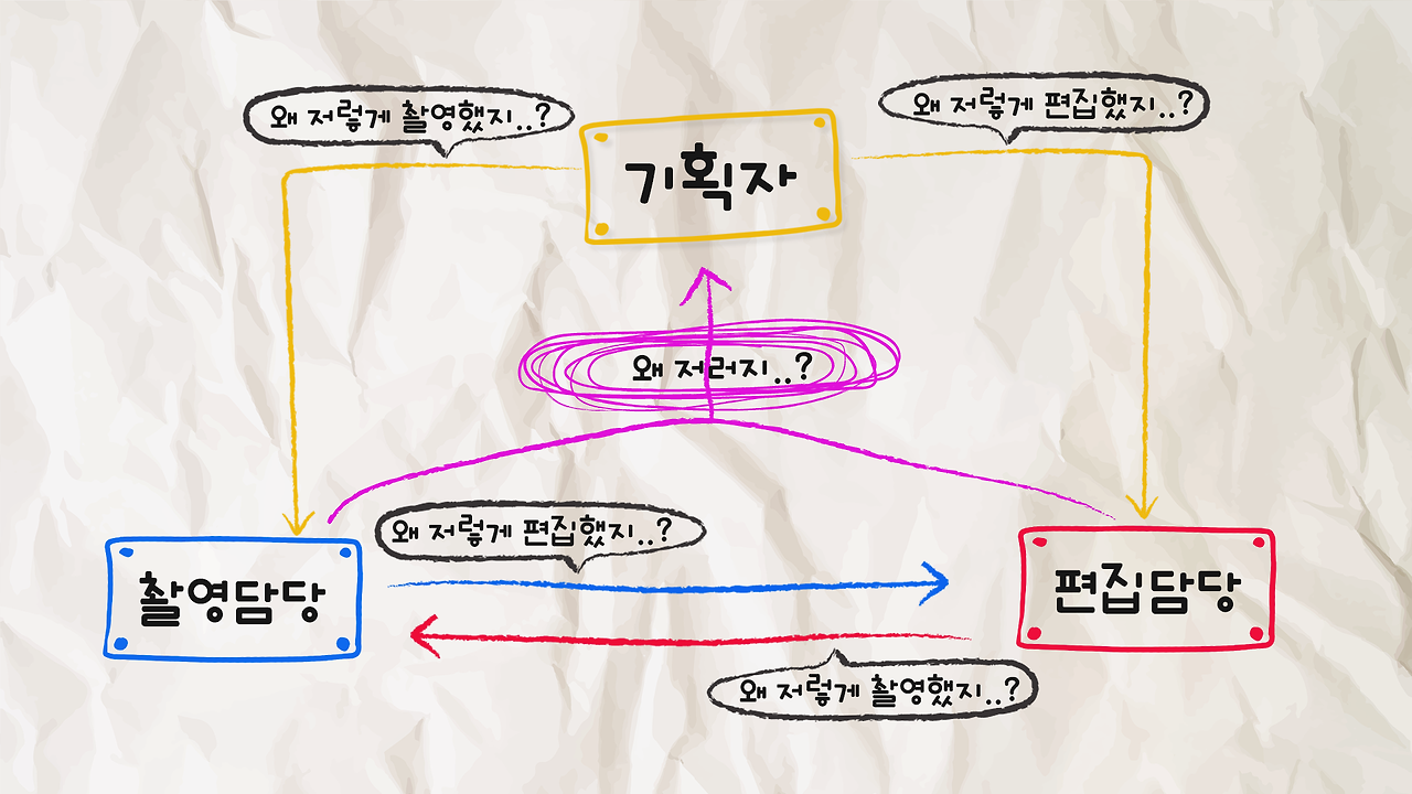 기획자가 기획'만', 촬영 감독이 촬영'만', 편집자가 편집'만'하게 되는 구조에서는 다음과 같은 상황이