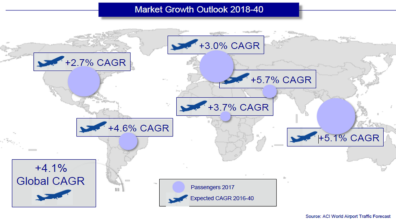 출처:https://blueswandaily.com/frankfurt-airports-third-terminal-construction-is-under-way-and-a-lcc-pACI에 의하면 2040년까지 여객수요는 전 세계적으로 연평균 +4.1% 증가하며 유럽은 연평균 +3.0% 증가한다.