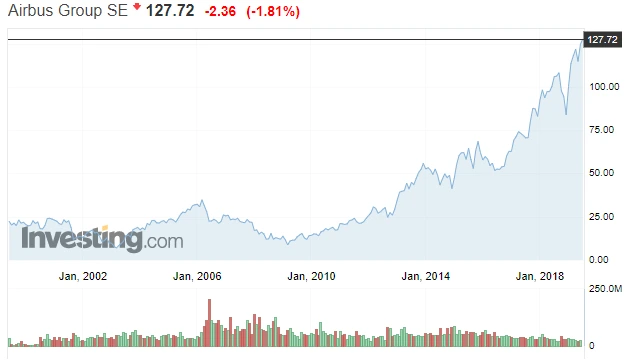 A320 내부 구조주 고객사는 LCC 항공사며 유럽 LCC 중 업계 2위를 자랑하는 EasyJet은 총 315대 비행기를 운행하는데 이중 181대가 A320이며 132대는 좀 더 작은 A319 라인을 운행중이다. 에어버스는 기존 A320보다 연료효율을 높인 A320 NEO를 출시하며 보잉 737MAX와 경쟁하는데 보잉의 신규 모델이 오작동으로 인해 운항 금지가 되면서 반사이익도 얻고 있다. 에어버스는 2018년에 800대를 인도했으며 2019년에는 880~890대를 인도할 예정이라고 한다. 주가도 신고가 행진을 거두고 있다.