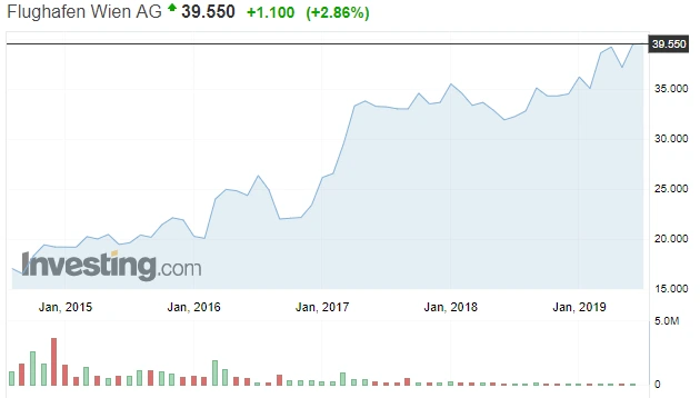 출처:Investing.com또한 유럽 내 공항 중 LCC를 적극적으로 유치하는 공항이 이득을 보고 있다. 대표적으로 빈 공항이다. 2018년 기준, 2,439만명의 승객수를 기록하며 전년비 +10.8% 증가했는데 2019년 6월 누계 기준으로는 전년비 +21.7%로 큰 폭으로 승객수가 증가하고 있다. 빈 공항은 Laudamotion와 Wizz Air 같은 저가항공사의 신규 노선 취항 덕에 승객수가 크게 늘어났다고 분석하고 있으며 특히 동유럽과 중앙유럽의 승객 수요가 +30% 증가하며 성장세를 이끌었다고 했다.