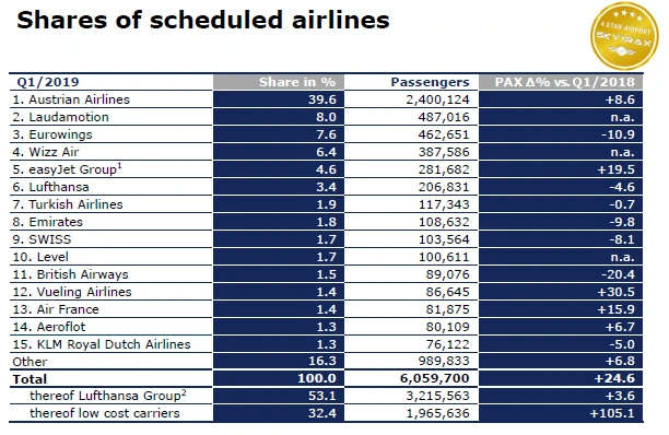 빈은 동유럽과 서유럽을 연결하는 중심부에 위치하고 있어 지리적인 이점을 가지고 있다. 하지만 가장 큰 요인으로는 적극적인 LCC 노선의 유치다. 전체 승객 중 LCC 승객의 비중이 17년 말 16.4%에서 18년 말 23.7%로 증가했으며 19년 1분기는 32.4%로 큰 폭 증가하였다.