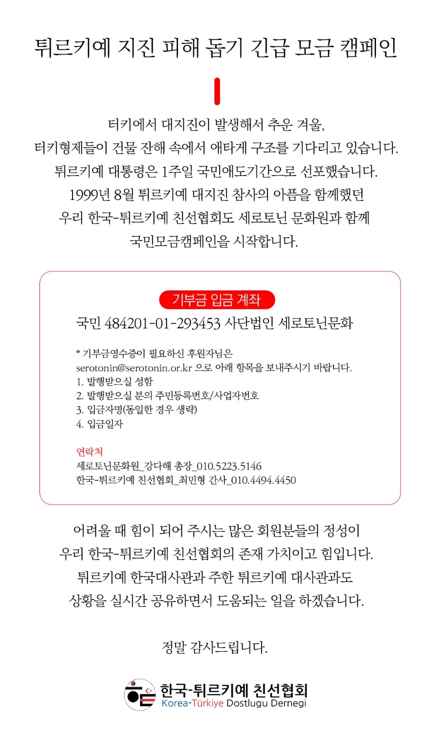 아침 출근길 뉴스에서 접했는데 한국-튀르키예 친선협회는