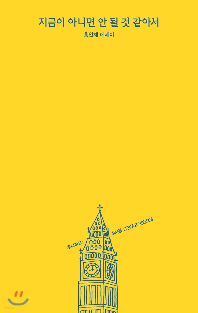 그때 우연히 이 책을 발견했다. 친구와의 약속 시간보다 조금 이르게 도착하여 동네서점에서 발견하게 된 ‘지금이 아니면 안 될 것 같아서(홍인혜 作)’는 그렇게 내 인생에 안착했다. 제목이 도저히 읽지 않으면 안 될 것 같아서인지 많은 이들이 그 책을 집어들은 듯 이미 손때가 묻어있었고, 나는 홀린 듯이 새 책도 아닌 것을 계산대로 가져갔다. 지금은 개정판이 나와서 노란 바탕에 빅벤이 그려져 있지만, 초판본엔 하얀색 양장본에 런던의 그림들이 흐릿하게 그려져 있을 뿐이었다. 오로지 지금이 아니면 안 될 것 같다는 그 제목이 나를 강렬하게 이끌었고, 그날 나는 그 책을 몹시 빠르게 완독한 것 같다.