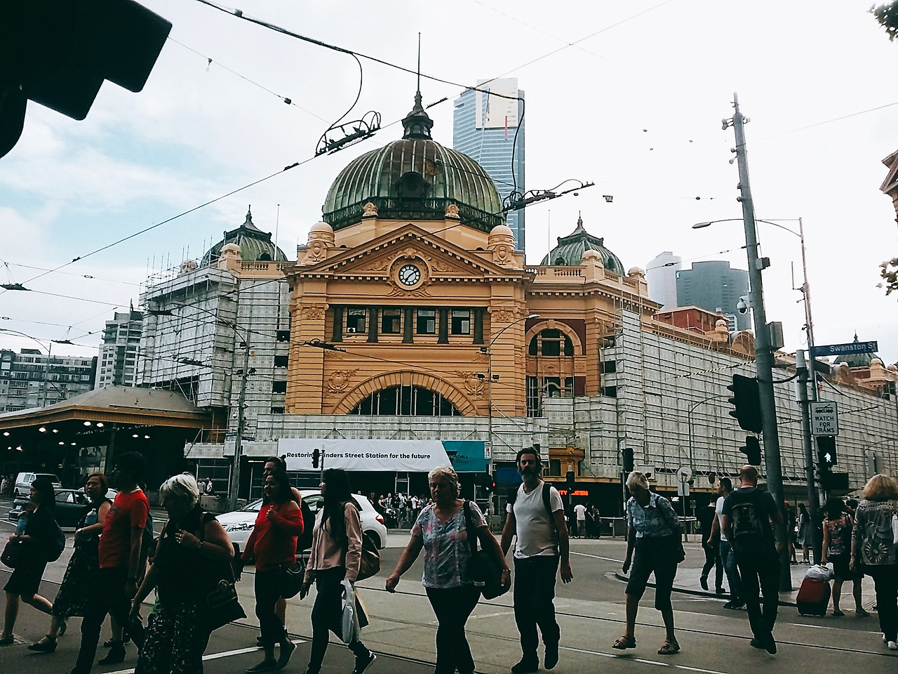 멜버른을 ‘호주의 유럽’이라 부르는 것을 제법 들었는데 아마도 그러한 이미지를 더욱 심어주는 것은 도시 곳곳의 유럽풍 건물과 더불어 플렌더스역일 것이다. 멜버른은 대체로 시드니보다는 고전적인 매력이 돋보이는 도시였는데, 그중 플렌더스역은 그 자체만으로도 멜버른을 대표하는 하나의 심벌과도 같았다. (실제로 시드니 기념품 숍에서는 오페라하우스 스노우볼을 판매하듯이 멜버른에서는 플렌더스역 스노우볼을 판매하고 있었다.) 다소 날씨가 흐렸음에도 불구하고 플렌더스 역을 사진에 담는 것만으로도 내가 멜버른에 왔다는 것을 한껏 체감할 수 있었다. 주변에서는 무심히 역을 지나가는 사람들 사이에서 나처럼 몇몇 관광객들이 길 건너 신호등 앞에서 연신 카메라 셔터를 눌러대는 것을 볼 수 있었다.