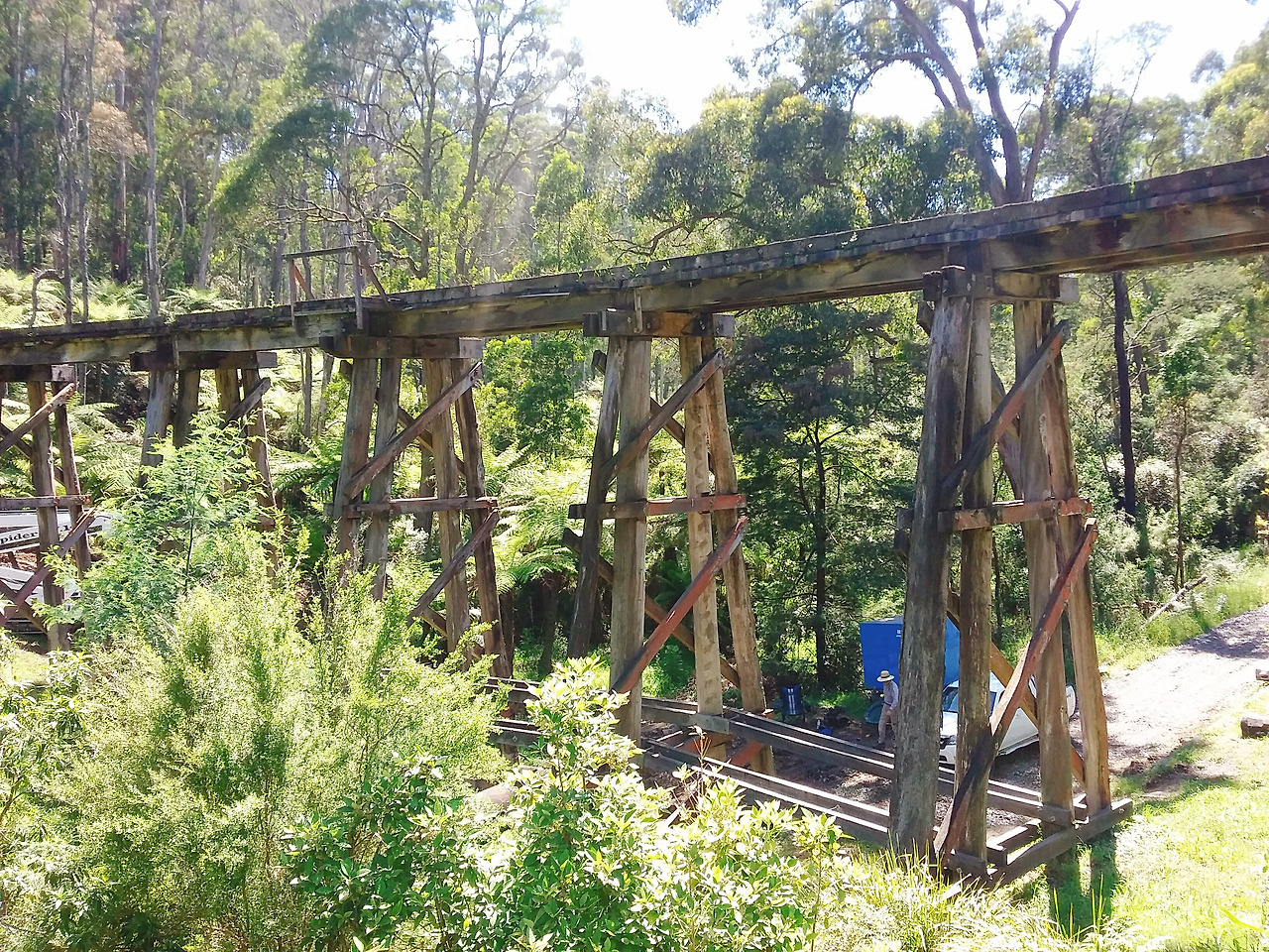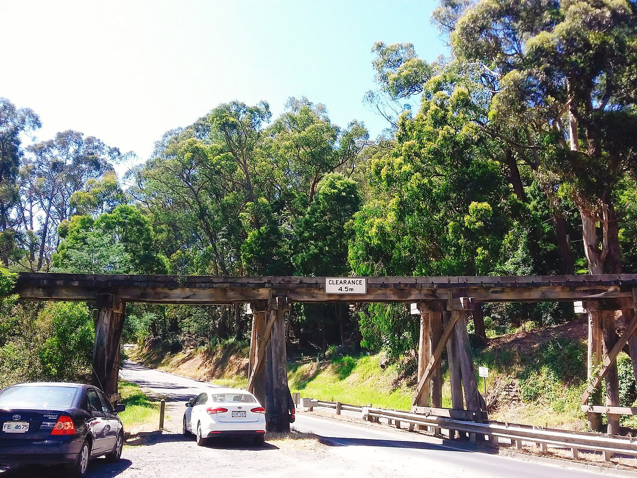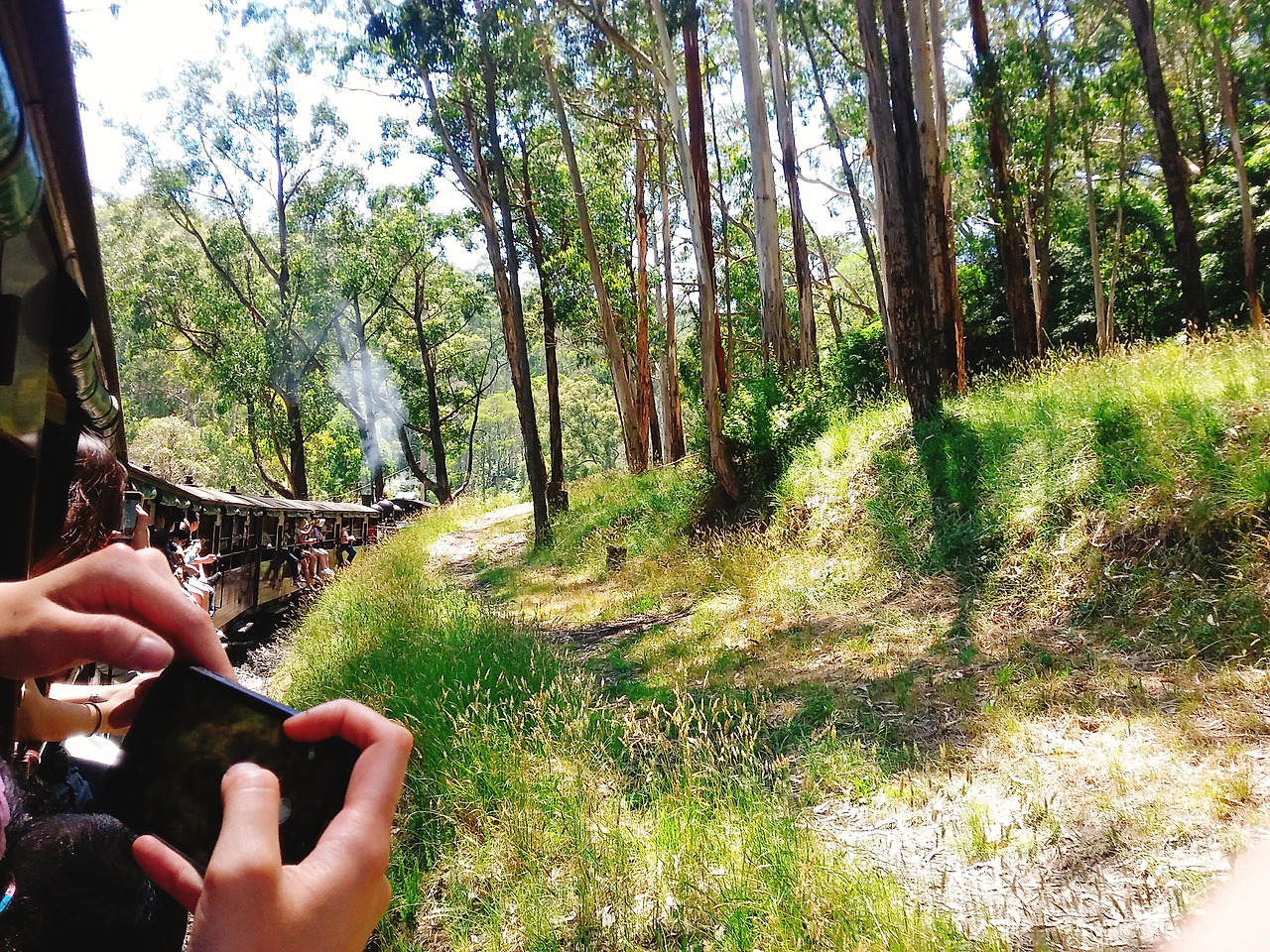 전 날 12시간에 가까운 긴 여정 탓에 몸이 말이 아니었던 나는 퍼핑 빌리를 타보고 말겠다는 의지 하나만으로 간신히 일어나 전날과 같은 픽업 장소로 향했다. 다행스럽게도 그레이트 오션 로드 투어를 함께한 예주와 이번 투어 역시 함께할 수 있었고, 잘 맞는 동행과 함께한다는 생각에 평소보다는 조금 더 활기찬 마음으로 여행을 떠날 수 있었다. 버스를 달리고 달려 처음으로 도착한 장소는 전날 본 메모리얼 아치와 제법 흡사하게 생긴 퍼핑빌리 입구였다. 입구 뒤로는 목재로 만들어진 퍼핑 빌리 기찻길이 보였고, 유아용 놀이기구를 상상했던 것과는 다르게 제법 높이가 있어보여 창문 밖으로 발을 내밀고 기차를 타는 것이 가능한지 의구심이 들었다. 햇살이 좋은 덕에 입구에서 몇 장의 사진을 건질 수 있었고 그렇게 고대하던 단데농 국립공원에 입성하게 되었다.